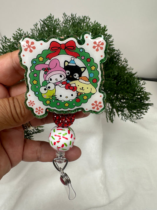 Kitty and Friends Wreath Badge Reel