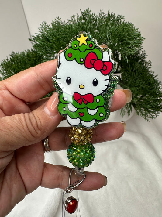 Christmas Tree Kitty Badge Reel