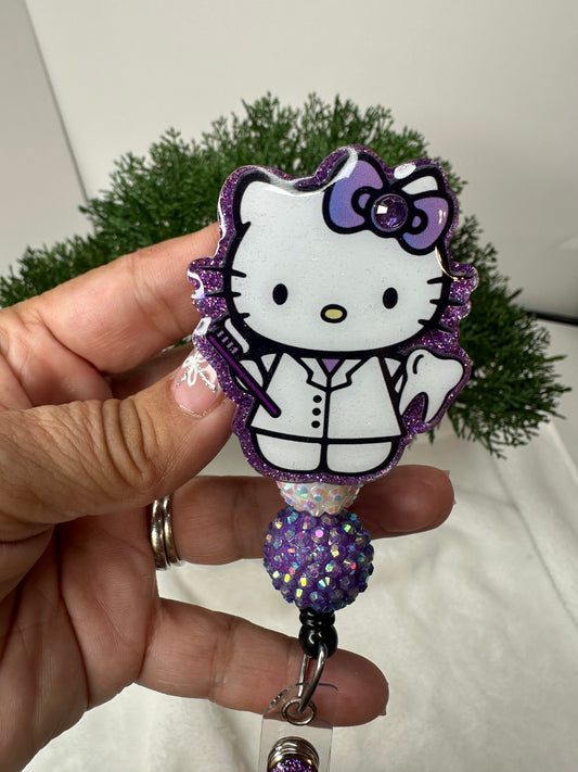 Purple Kitty Dental Assistant Badge Reel