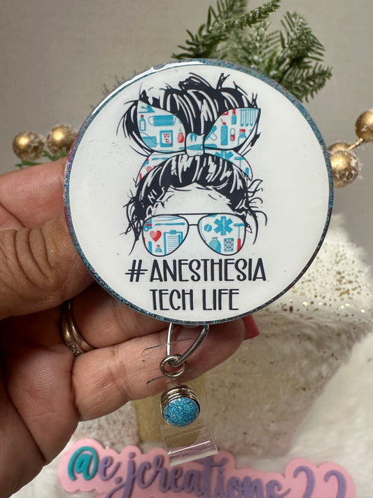 Anesthesiologist Messy Bun Badge Reel