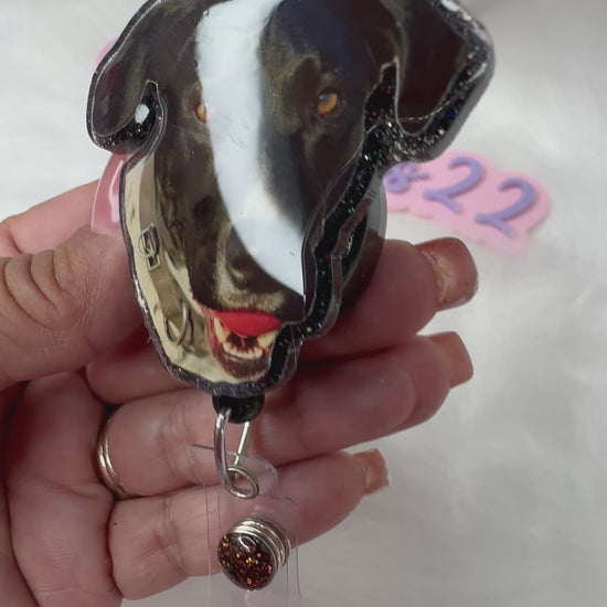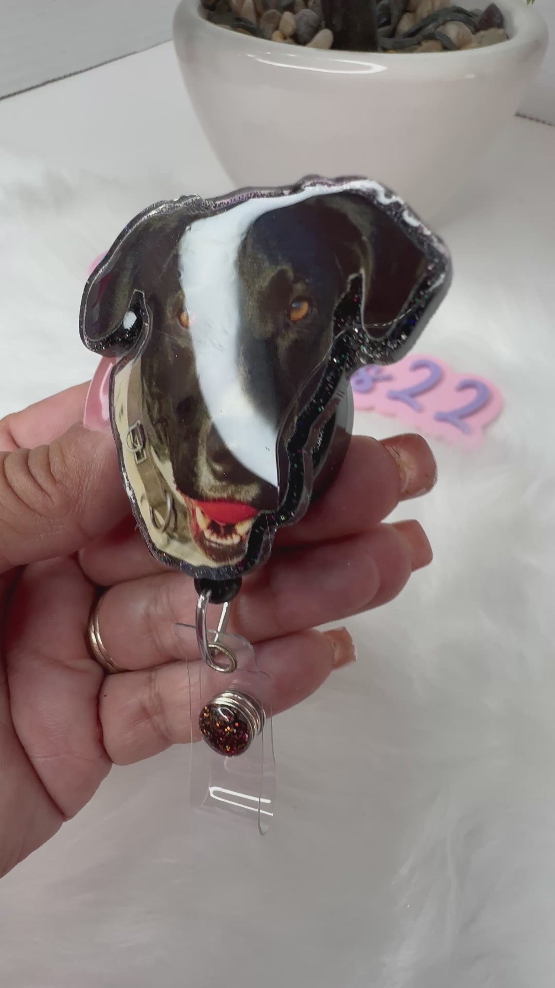 This listing is for special custom badge reels of your fur babies, babies, etc. Please upload a perfect picture of your choice. The acrylic blank will be cut to the shape of the face. If you have any questions please email us @ e.jcreations22@yahoo.com or send us a message on Instagram @e.jcreations22 for faster assistance.