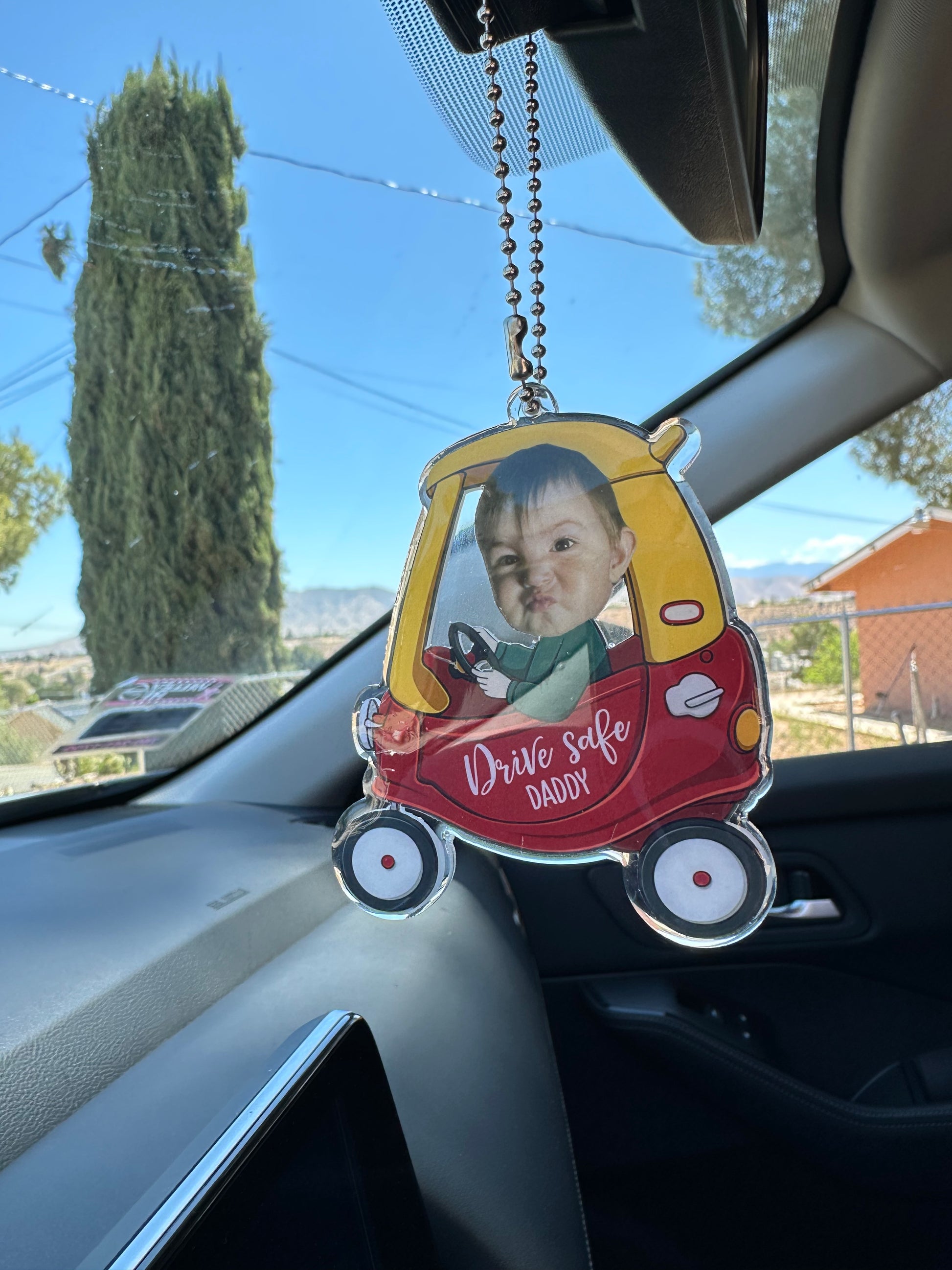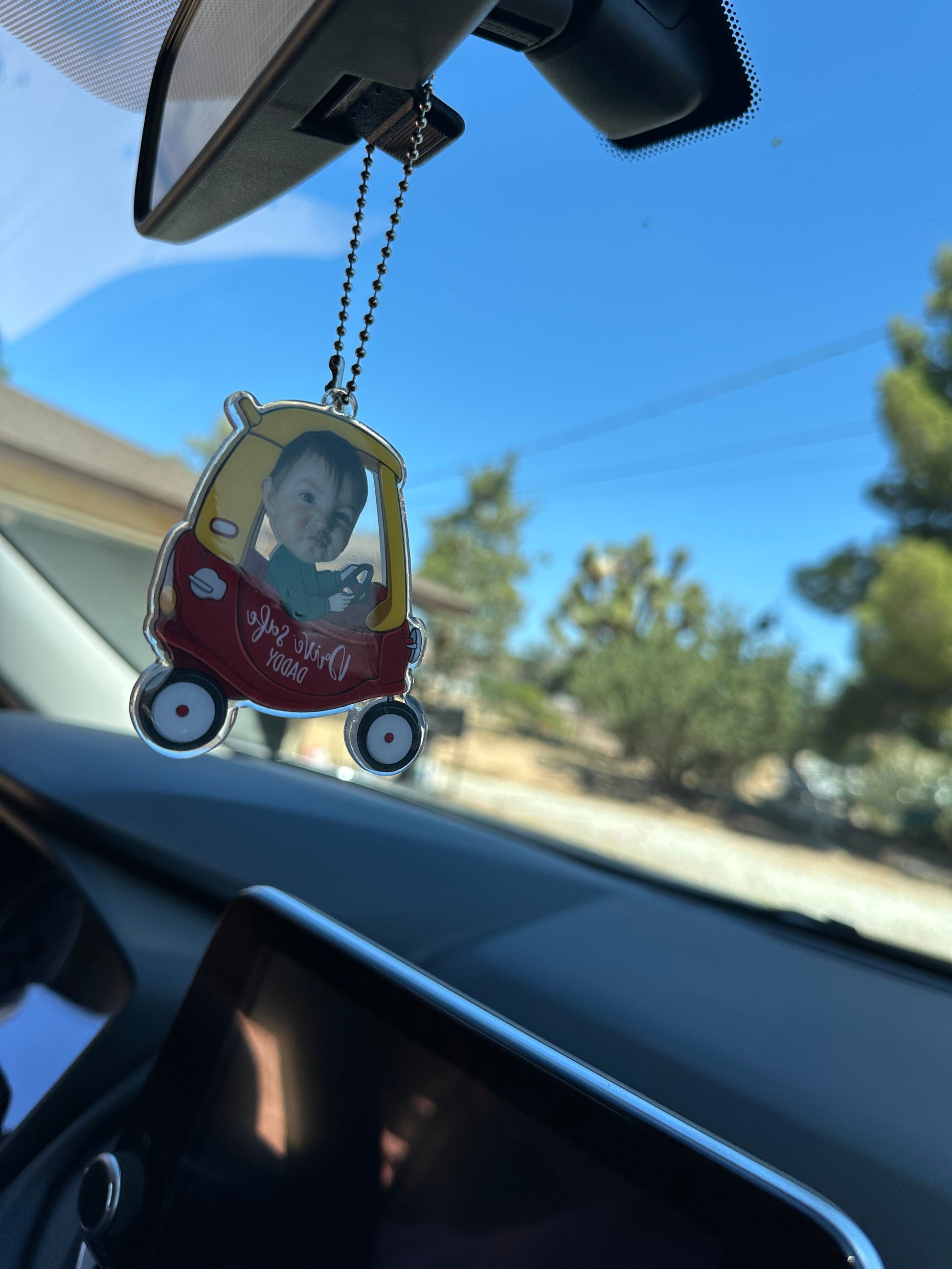 đOur Personalized Baby Photo Car Mirror Hanger is the perfect way to keep your little one close, even when you're on the road. Custom car accessory allows you to upload one photo.Â