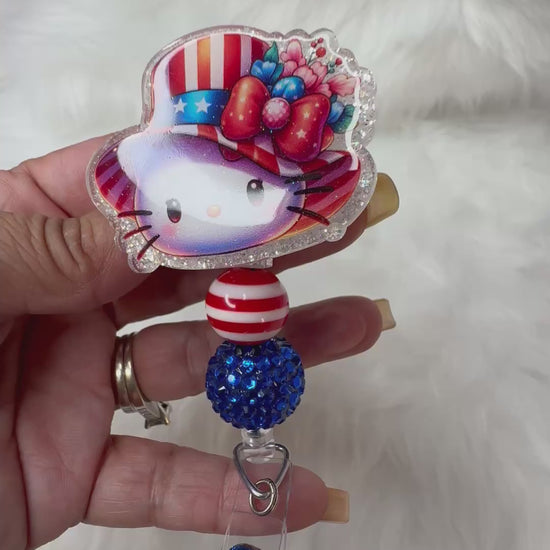 Kitty 4th of July Badge Reel